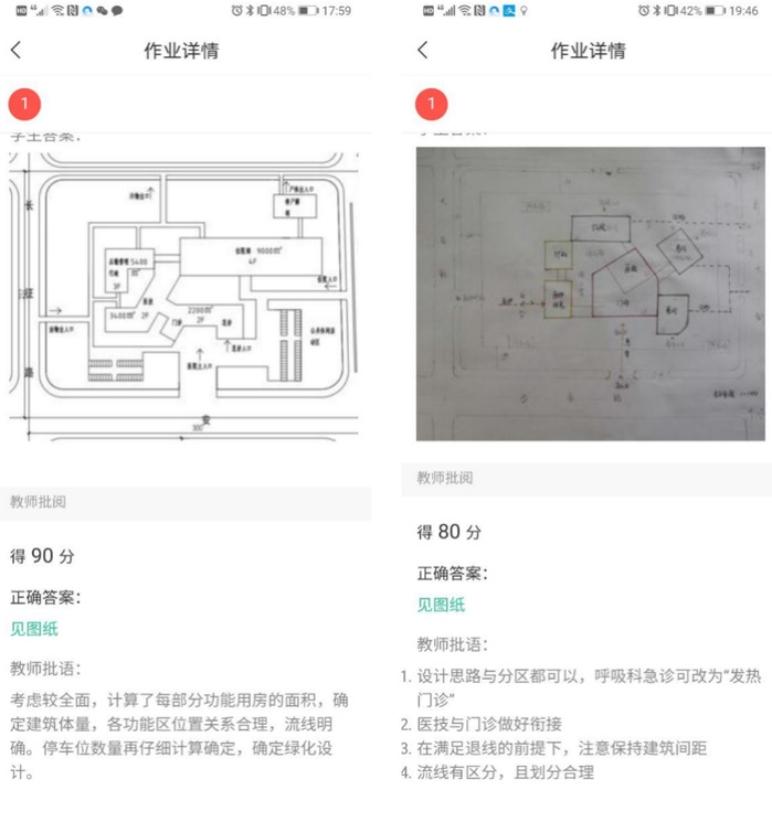 针对所做项目,通过直播与录播讲解相关设计要求,推送相关资料作为设计指导。以“平战结合”为设计原则,以“三区两通道”为设计依据,以“洁污分区”为设计要点,重点从总平面规划、平面布局、功能用房、消防设计等方面讲解建筑设计VI(传染病医院)的设计理论,让学生明确设计任务、设计要求与设计成果。“学习通”中植入相关医院设计期刊,作为案例分析设计要点。以“新冠肺炎”为切入点,引入“解读火神山、雷神山、小汤山医院设计”的相关资讯,了解装配式建筑技术在本次应急医院建设中的应用。插入“方舱医院”连夜抢建的新闻报道,探索大型公建加强防疫应急体系设计。通过CADE建筑设计博览会“直击武汉 连线中南院 探秘雷神山”直播视频交流栏目,熟悉规划、建筑、结构、水暖电在整体设计中各自发挥的主导作用,“启发建筑从业者深度思考”。