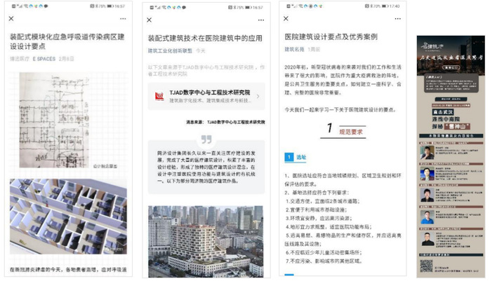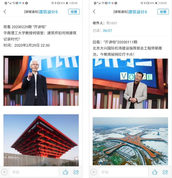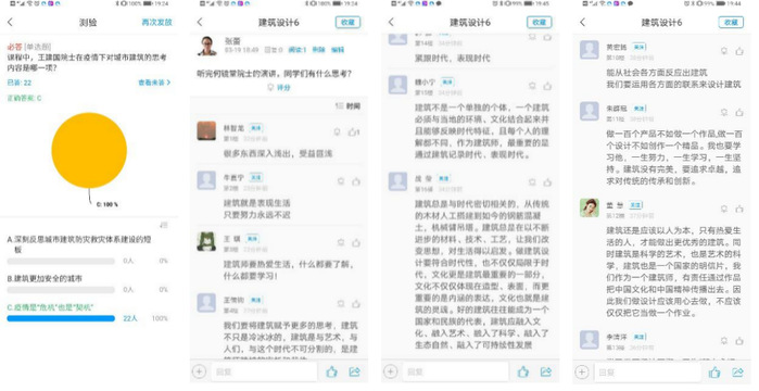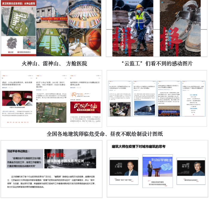 课程讲授引入“火神山”、“雷神山”、 “方舱医院”等同类型建筑,分析其设计特点与设计要求。提到在此特殊情况下全国各地建筑师临危受命、昼夜不眠绘制设计图纸,感受设计师的职业使命感。讲述建筑背后那些感人建设者的故事,选取12张“云监工”们看不到的感动图片,让学生学习“逆行者”的责任感和大无畏的牺牲精神。根据习总书记指出的:“疫情防控不仅是医药卫生问题,而是全方位的工作,各项工作都要为打赢疫情防控阻击战提供支持”的指示,“建筑师”杂志社从建筑文化的视角,邀请相关专家学者围绕“疫情下建筑和城市的反思与应对”议题开展笔谈,课中选择三位建筑大师介绍其议题内容,为学生提供最新建筑行业动态,引导学生要结合所学专业“学以致用”,为社会、为人民、为国家,做出应有的贡献。