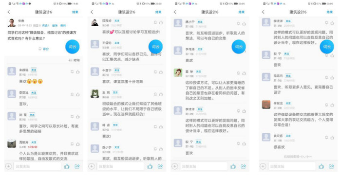 通过教师直播讲评设计方案,检验教学效果。以学生互评、教师总结的方式评阅每一阶段草图及草图模型,将每一位学生的设计方案存在问题逐一指出,及时修改。直播时以主题讨论、投票选择、试题测验的手段检验学生理论知识的掌握情况。学生参与度较高,各抒己见、气氛活跃。从录播视频中出测试题,考查学生对其内容的观看学习效果。针对扩展知识,进行主题讨论,检验此种方式是否可以让学生拓展思维,启发思考。从答题互动情况了解学生知识掌握程度,发现学生接受新知识的能力比较快,思路开阔,且有自己独到的见解。