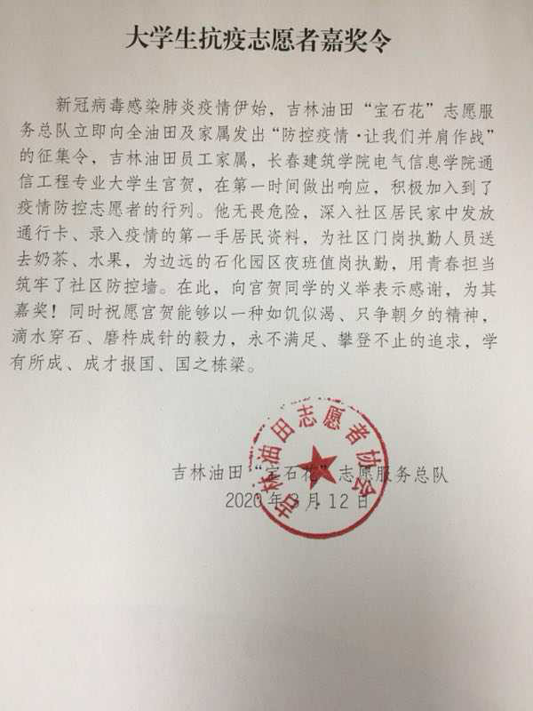 宫贺 吉林油田志愿者协会