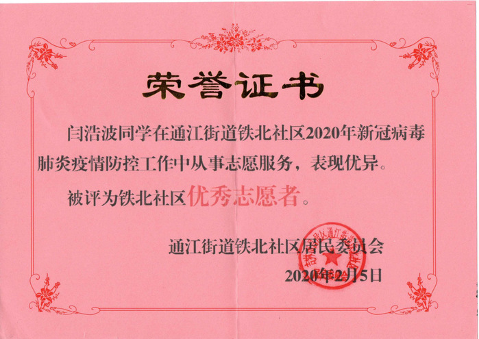 闫浩波通江街道铁北社区居民委员会