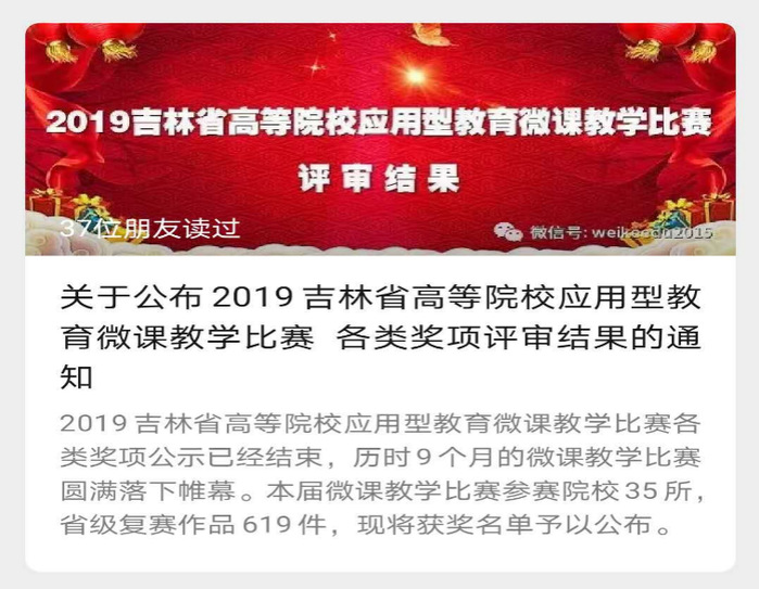2019吉林省高等院校应用型教育微课教学比赛评审结果