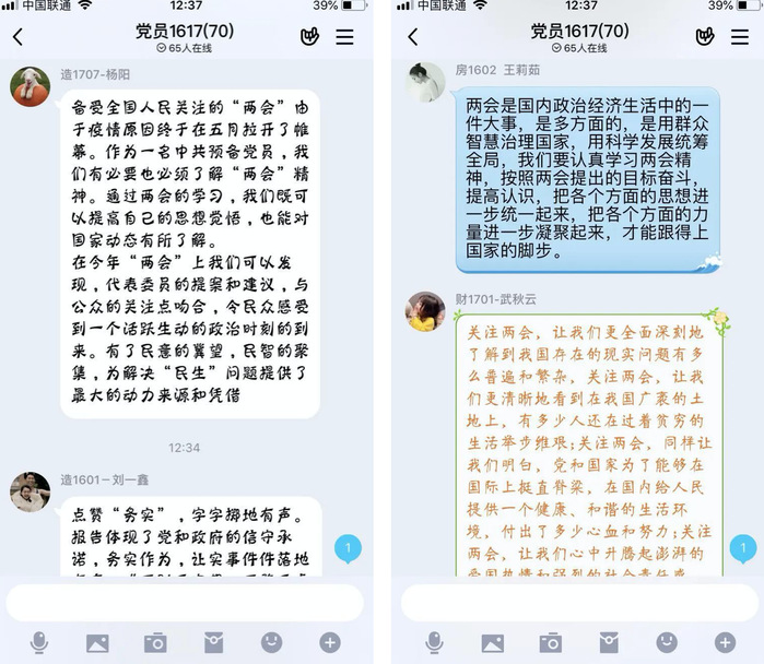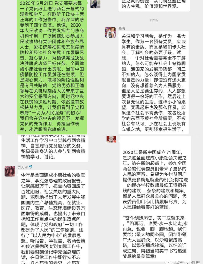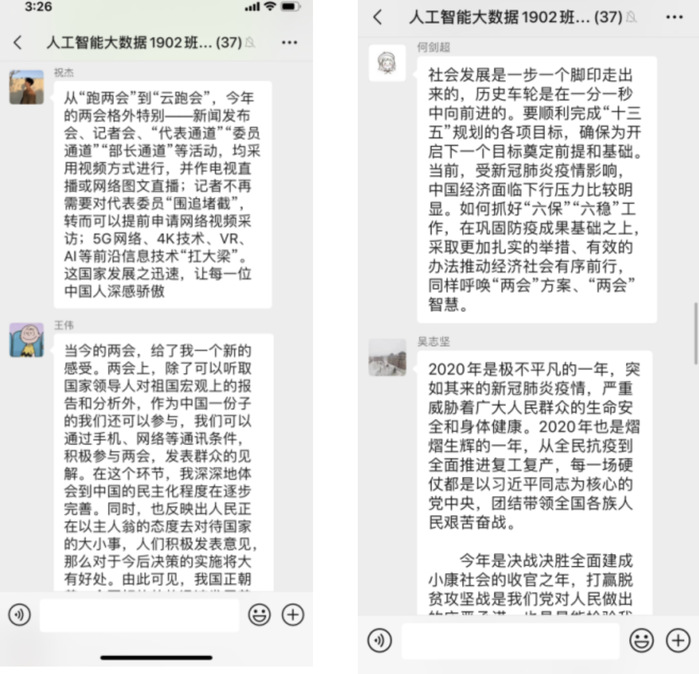 学校师生一致认为,在疫情防控阻击战取得重大战略成果之际全国“两会”开幕,体现了中国共产党领导下的中国人民主动担当、积极作为,战胜疫情风险冲击、努力保持经济社会良好发展的信心决心。李克强总理所作的政府工作报告,高举旗帜、求真务实、开拓创新、鼓舞人心。大家深刻感受到,过去一年里,在习近平新时代中国特色社会主义思想和党的十九大精神指引下,我国经济社会发展取得了历史性成就,感受到党和政府为祖国发展、人民幸福做出的不懈努力。
