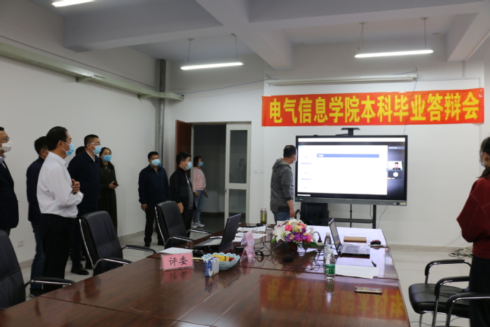 许世彬一行边走、边听、边问,听取了学校对常态化疫情防控、线上教学、开学准备等工作的介绍,实地察看了毕业生线上答辩现场,听取了相关学院情况介绍。