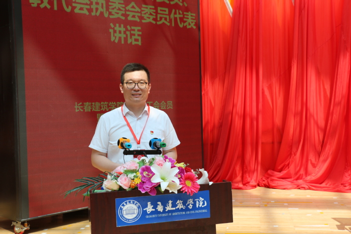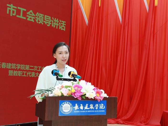 长春市教科文卫体工会高教部长尹宇奇代表长春市教科文卫体工会向大会的召开表示祝贺。尹宇奇指出,学校工会要努力建设学习型、服务型、创新型工会,着重做好以下几个方面工作:第一,要站在时代的高度,准确把握新时期工会工作的政治方向;第二,要团结动员教职工立足岗位建功立业,为学校发展建设积极贡献智慧和力量;第三,要切实履行工会维护职工合法权益的基本职责,组织引导教职工在奋斗中创造更加美好的生活;第四,要以改革创新精神加强工会自身建设,不断提升学校工会工作的凝聚力和影响力。