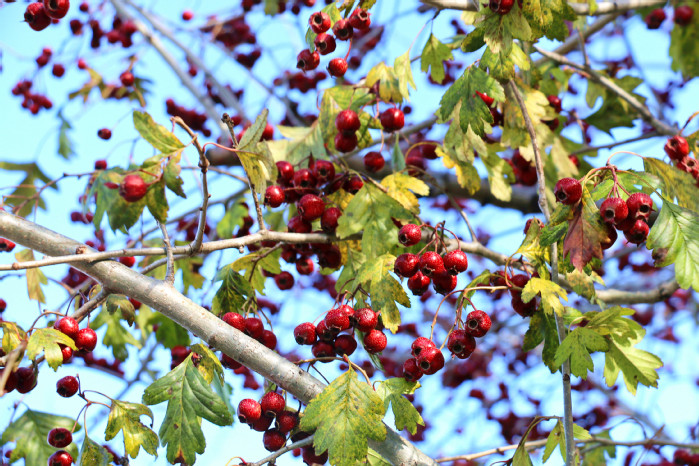 枝头上挂着愈发饱满的果实,红彤彤的点缀在枝叶间,像张张笑脸,沐浴着阳光,静静的欣赏着校园绚丽的色彩。