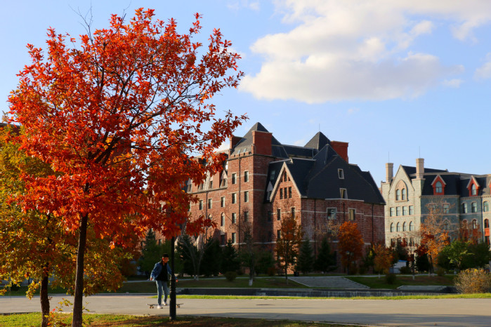 一年有四季,四季各不同,唯有秋更深,意更浓。红叶绿草虚掩着的教学楼,漫漫秋色环绕着的宿舍楼,铺满金黄的甬道---秋天在长建校园尽情展示着美感与盎然。