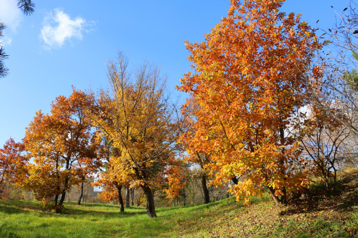 阳光从树的间隙中透过,一片深秋的风景就这样生动起来,被时光闲置的静谧空间,连文字也显得多余。