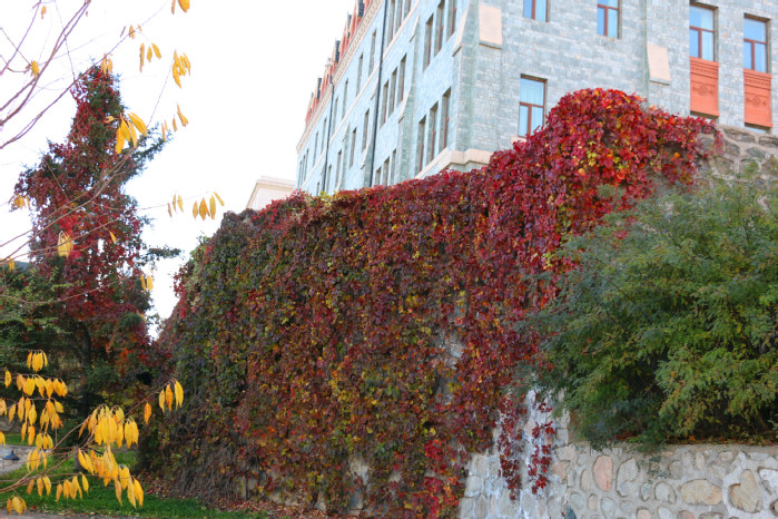 温暖的阳光洒落在藤蔓攀附的墙壁,红叶内敛的墙头,折射着过往时间的沉香,这亦是光阴的馈赠。