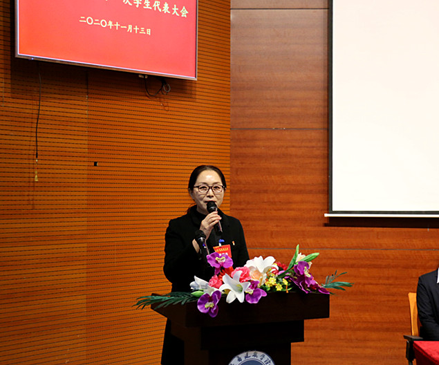 学校党委副书记、副校长吴延红致开幕词。她首先代表学校党委对大会的召开表示热烈祝贺,向参会的全体代表和全校青年学生致以亲切的问候和最美好的祝愿。她表示,学校各群团组织作为党联系广大师生的桥梁和纽带,要始终走在时代前列,在今后的工作中,应为光荣的使命、共同的事业团结奋斗,努力开创群团工作新局面。她向广大青年学生和群团组织提出四点希望:一要坚定理想信念,厚植爱国情怀;二要坚持博学专精,服务发展大局;三要勇担时代使命,坚持追梦前行;四要不忘初心,牢记使命,坚定信念,努力学习,始终保持昂扬向上的前进姿态,在实现中华民族伟大复兴中国梦的生动实践中,放飞青春理想,书写人生华章。