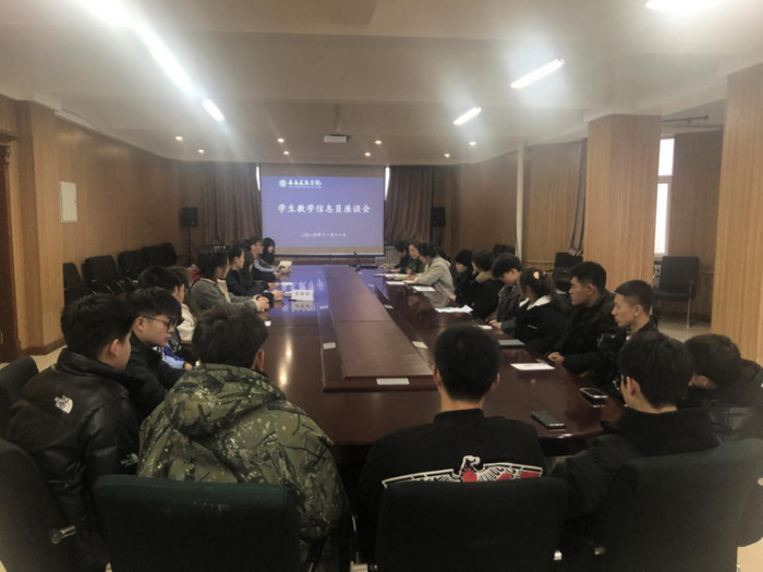 11月18日下午,学校教学质量监督与评价处在行政楼三楼会议室召开了本学期学生教学信息员座谈会。来自各学院的学生教学信息员代表及教学质量监督与评价处全体人员参加了座谈会。会议由教学质量监督与评价处处长田甜主持。