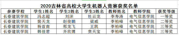 近日,“2020年吉林省高校大学生机器人大赛”隆重举行。学校电气信息学院在此次大赛中荣获一等奖1项、二等奖1项、三等奖2项。