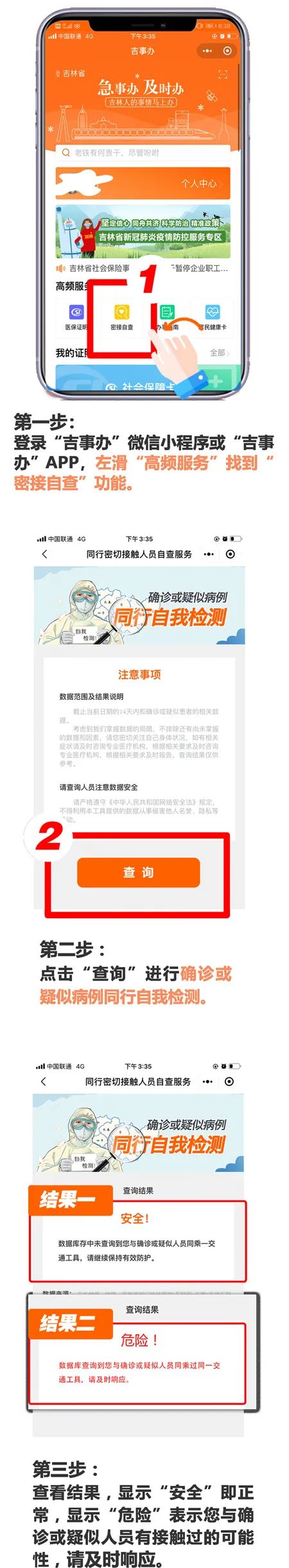 面对新冠肺炎疫情,你是否担心自己是“密切接触者”? 是否担心与确诊、疑似患者共同乘坐过火车、飞机等公共交通工具?现在,告诉你一个快速查询的办法——“吉事办”的“密接自查”功能。