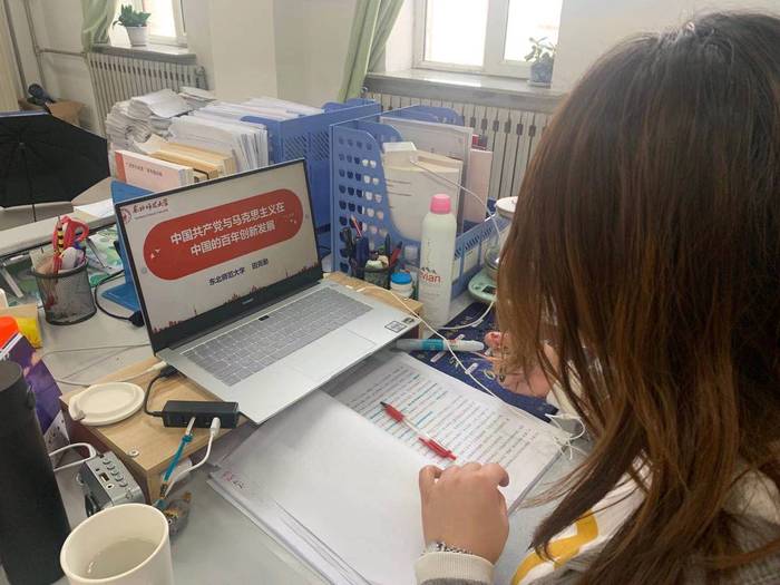 14时30分,“开学第一课”准时开播。中共党史专家、东北师范大学马克思主义学部田克勤教授讲授“中国共产党与马克思主义在中国的创新发展”专题党课,勉励青年学生坚持以史为鉴,述往思来,珍惜来之不易的伟大成就,进一步坚定“四个自信”,始终做到听党话、跟党走。