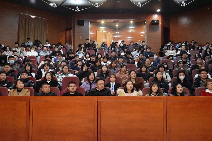 此次讲座采用线上线下同步直播的方式进行。学校党委书记李贵海,党委副书记、副校长吴延红,以及各学院分团委书记参加讲座,近百余名学生现场聆听了本次讲座。