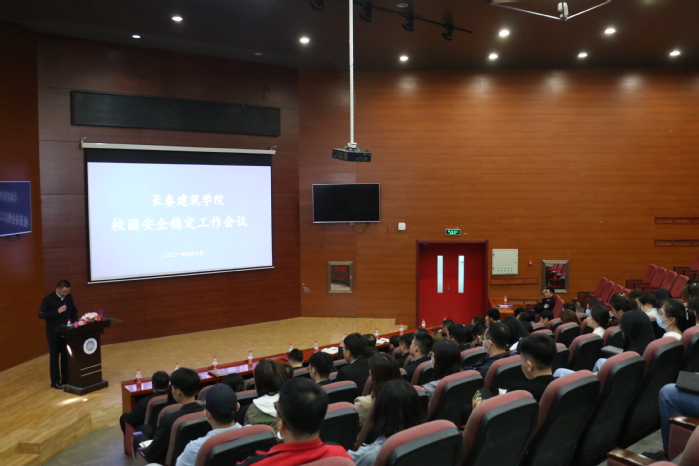 为切实做好当前和未来一段时间学校疫情防控和安全稳定工作,预防各类安全事故的发生,维护校园稳定,今天上午9时,在建筑与规划学院报告厅召开了“2021年校园安全稳定工作会议”。会议由保卫处副处长曹大勇主持。学校党委书记李贵海,各中心主任,各学院党总支书记(副书记)、实验室负责人、全体辅导员、保卫处全体人员、网络中心、后勤处、食堂管理负责人、学生代表参加了会议。
