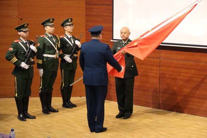 王学刚为训练团团长王帅授旗。
