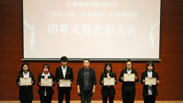 为贯彻落实教育部《高等学校学生心理健康教育指导纲要》和《长春建筑学院2021年学生工作要点》文件精神,保障学生在常态化疫情防控期间的心理健康水平,学校在5月初举办了以“阳光心悦,青春健康”为主题的2021年心理健康节。为表彰在心理健康节期间表现突出的先进集体和个人,5月25日下午,学校学生心理健康教育中心在建筑与规划学院报告厅举办了2021年心理健康节闭幕式暨表彰大会。