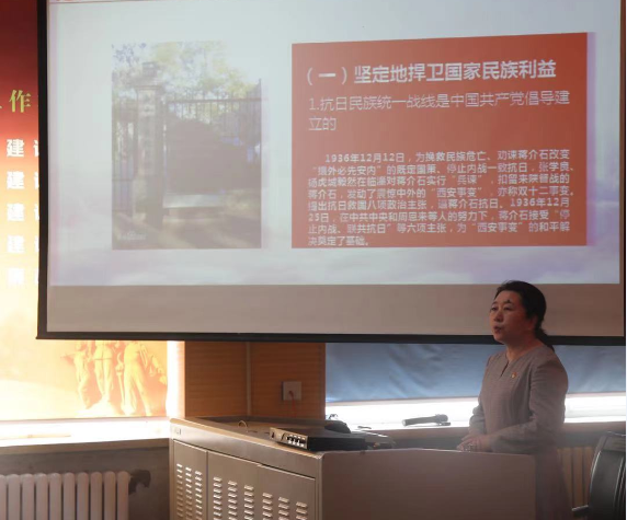 随后,全体党员来到长春大学国际教育学院参加党史学习报告会,报告会由李贵海主持。吉林省委党校公共管理教研部副主任、中国行政体制改革研究会会员、延边大学特聘教授武文莉教授授课。她以《中国共产党为什么“能”》为题,从中国共产党为什么能建立新中国、中国共产党为什么能在战后迅速发展经济、中国共产党为什么能正确对待历史错误、中国共产党为什么能取得现代化建设的巨大成就等几个方面系统阐述、深刻剖析了中国共产党引领中华民族站起来、富起来、强起来这些伟大飞跃的历史原因。