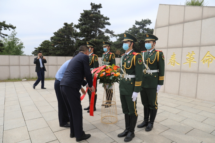 按活动安排,苗威带领大家在长春革命烈士纪念碑前举行了公祭仪式。全体党员重温入党誓词,李贵海领誓。苗威与李贵海共同为烈士敬献了花篮,整理缎带和挽联,向革命先烈鞠躬默哀。全体党员瞻仰了烈士纪念碑。深切缅怀革命先烈的不朽功绩,表达对革命烈士的崇高敬意。苗威号召大家要继承先烈遗志,弘扬革命精神,重温党的光辉历程和优良传统,接受革命历史教育。