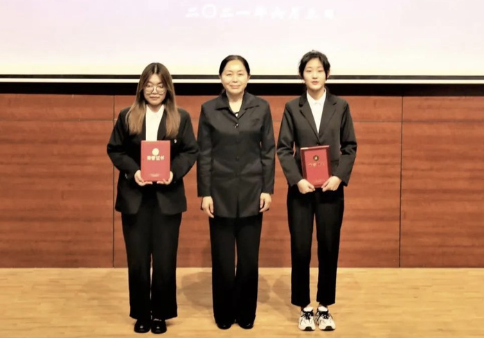 人力资源处副处长、国际合作与交流处副处长赵月为获得优秀奖学生颁奖