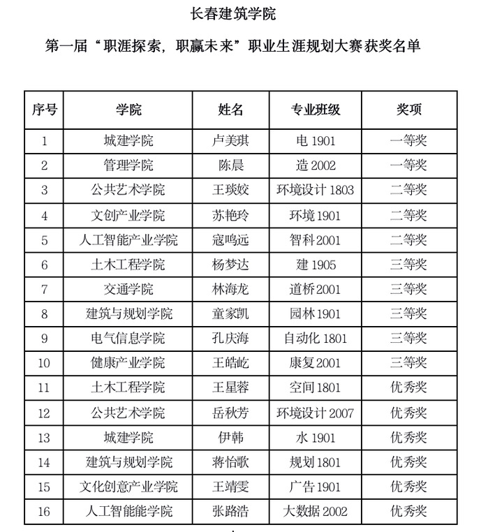 为进一步增强大学生职业生涯规划意识,引导学生树立正确的成才观、择业观和就业观,学校学生服务管理中心学生工作处于6月3日在建筑与规划学院报告厅举办了第一届“职涯探索,职赢未来”职业生涯规划大赛。学校党委副书记、副校长吴延红,学生工作处处长王浩强,各学院党总支书记、部分辅导员莅临观赛。本届大赛还特邀吉林农业大学全国高校就业指导高级讲师唐少勋,长春大学旅游学院吉林省高校就业指导讲师张丹鹤,以及学校有关职能部门负责人担任大赛评委,并为参赛选手点评与指导。