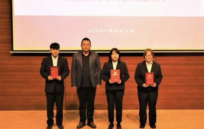 行政服务大厅主任、党委办公室主任杨东林为获得三等奖学生颁奖