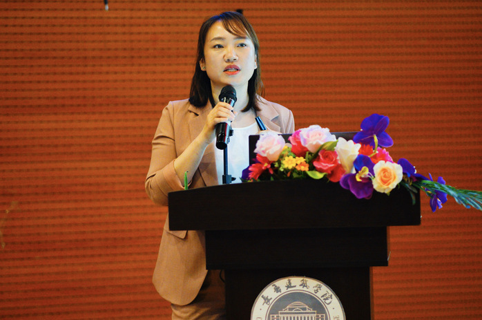 王玫以《第六届高等教育创新年会暨西浦全国大学教学创新大赛参会学习汇报》为题,介绍西浦全国大学教学创新大赛“以学生为中心”开展教学创新的理念,重点分享“深化校企合作,推进校企共建课程”“多专业联合毕业设计,扩大辐射面和影响力”“采用真实场景教学,打开学生内驱动力”三个典型案例,反思产教融合、协同育人、OBE教学理念、跨专业、跨学科融合、以能力或项目重构知识体系、智慧+ 等创新方法对学校教学改革的启示,汇报提升学校教师教学发展工作的设想。她围绕“未来教育”“融合教育”两大主题,介绍了西交利物浦大学对未来教育和未来大学的理解,分享西浦十五年“影响教育”使命引领下的教育探索,从升级传统教育、创建行业导向的融合式教育,到探索新兴职业教育,比照分析了董事长在教育领域的战略布局与发展思路,两大教育版块——长春建筑学院奢岭校区、高新校区和长春健康职业学院在办学过程中的实践与探索。对学校办学目标、办学特色、协同育人、校友文化、开放办学等有针对性的作了交流。