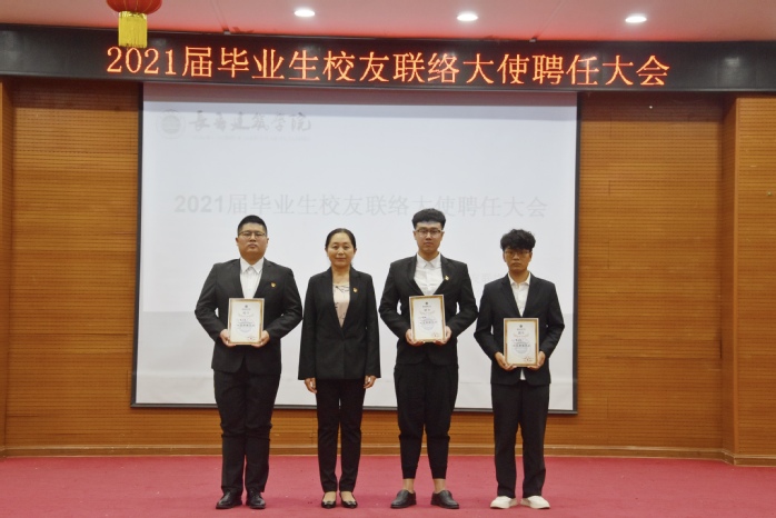 为加强学校校友联络工作,增进毕业生同母校之间的感情与联系,在毕业来临之际,学校启动校友联络大使评选聘任工作,2021届毕业生校友联络大使聘任大会于6月18日在学校土木报告厅隆重举行。学校党委副书记、副校长吴延红,学生服务管理中心主任、学生工作处处长兼校友联络处处长王浩强,学校团委书记刘珊珊,各学院党总支书记(副书记)、全体毕业班辅导员、选聘为2021届毕业生校友联络大使的同学参加。大会由学生服务管理中心学生管理科科长杨佳主持。