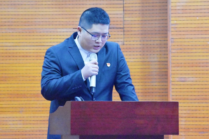 学校土木工程学院陈翔同学代表毕业生校友联络大使发言。他表示,感恩母校的培养和教育,并承诺将以高度的责任感和使命感,认真履行校友联络大使的职责,发挥桥梁纽带作用,跟踪校友发展动态,积极组织校友参加活动,支持母校事业发展。