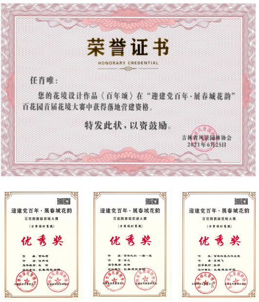 学校文化创意产业学院环境设计专业李鹏飞、许允、任肖唯三名同学在张妍老师带领下,经过初赛、复赛等环节取得了好成绩,其中,任肖唯同学的设计作品《百年颂》在同北京林业大学、吉林农业大学、苏州大学等多所院校提交的上百余幅作品竞争中脱颖而出,入选落地营建资格,在花团锦簇的长春百花园留下了一幅长建学子设计的优秀作品,为建党百年华诞送上了一份美好的生日祝福。