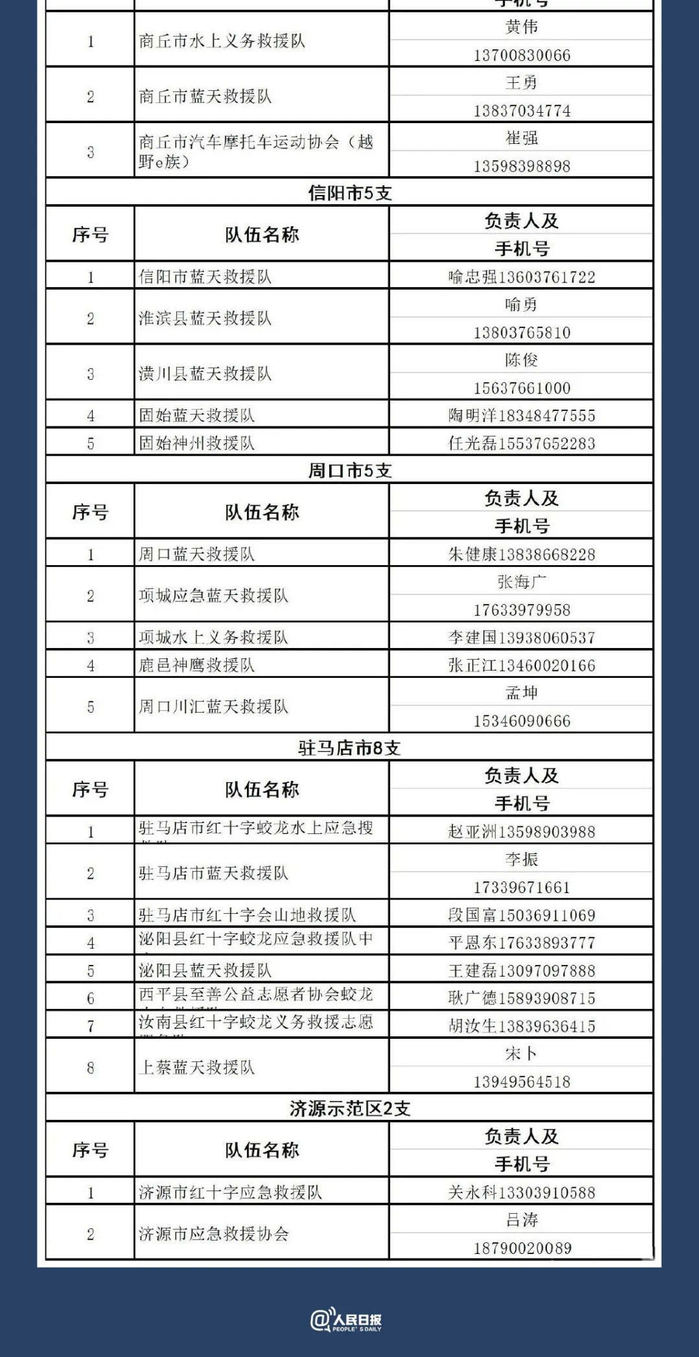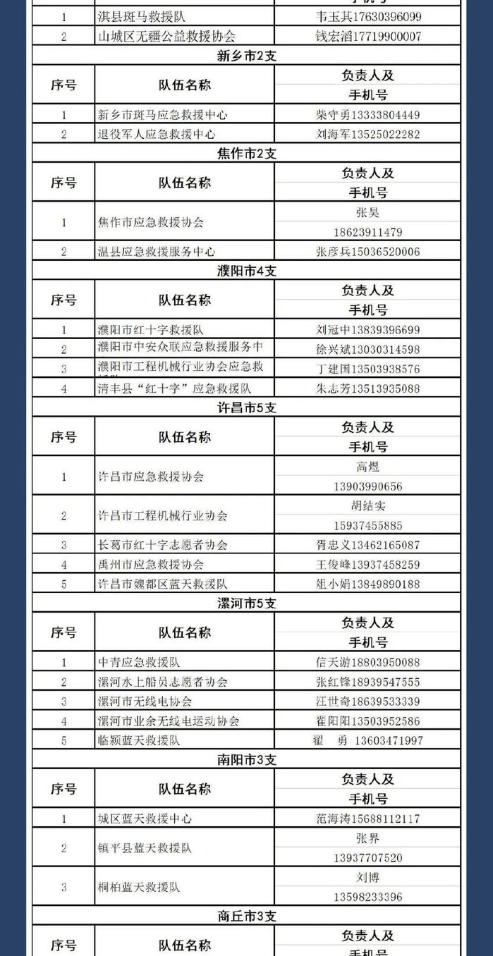河南全省救援电话汇总