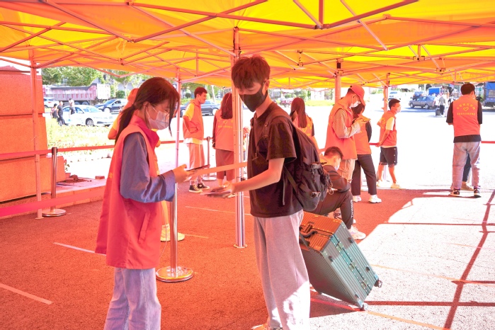 在奢岭、高新两个校区返校现场,返校学生按照查验核酸报告、检测体温、扫码核验、卫生消杀等流程进入校园,到各学院指定位置登记报到。学校学生服务管理中心、后勤保卫服务管理中心工作人员和学生志愿者们分工协作、密切配合,热情接待“回家”学生,报到现场秩序井然。