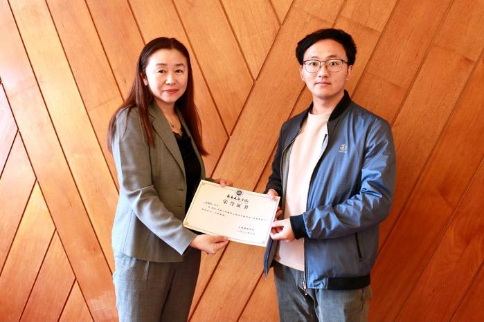 周勇宣布优秀学员名单,王玫为优秀学员颁发荣誉证书。