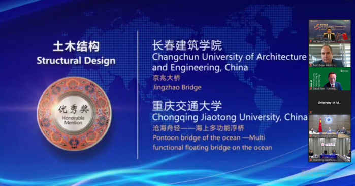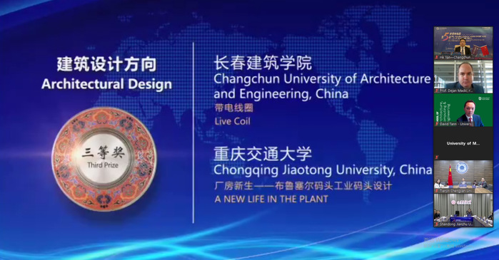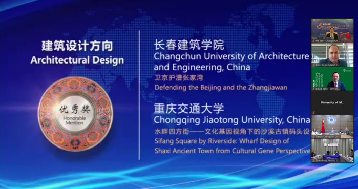 会议同步举行了“2021 国际大学生建筑设计与数字建模竞赛”及“‘一带一路’运河古镇风情国际摄影大赛作品”颁奖活动,学校取得了优异成绩。其中尹鹏程、王星博老师指导的作品《东栅.雨眠》获建筑与场景数字建模方向二等奖;张蕾、李建英老师指导的作品《带电线圈》获建筑设计方向三等奖;滕佳佳、李冲老师指导的作品《卫京护漕张家湾》获建筑设计方向优秀奖;张广萍、张志影老师指导的作品《京兆大桥》获土木结构方向优秀奖。学校获得2021国际大学生建筑设计与数字建模竞赛优秀组织奖。