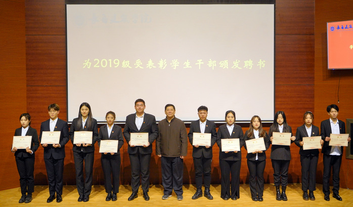 王宝龙为2018级主要学生干部颁发荣誉证书。