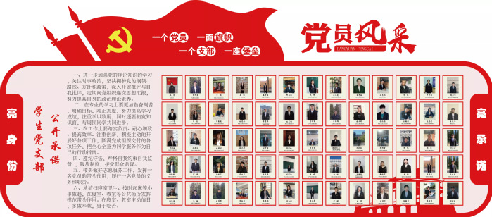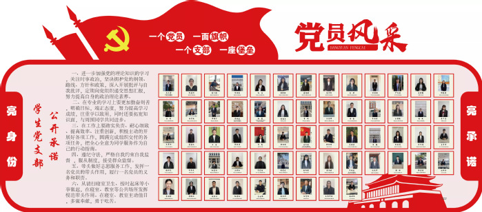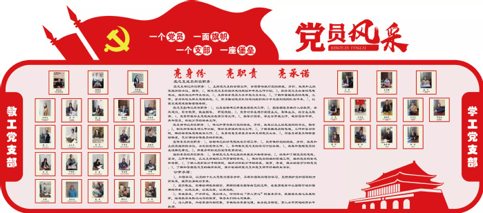 亮身份,展示风采。为增强党员的责任感和荣誉感,要求全体教工党员佩戴党徽上岗,全体学生党员寝室悬挂“学生党员寝室”标识牌,通过摆放工作牌、设立党员示范(服务)岗等形式,把党员形象摆在窗口、亮在一线,引导党员强化党性意识、牢记党员身份、展示党员风采。