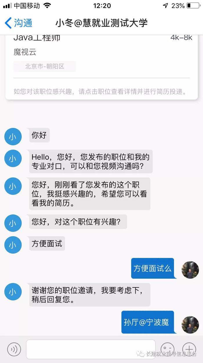 沟通面试:学生对感兴趣的企业或职位可以随时与HR沟通。