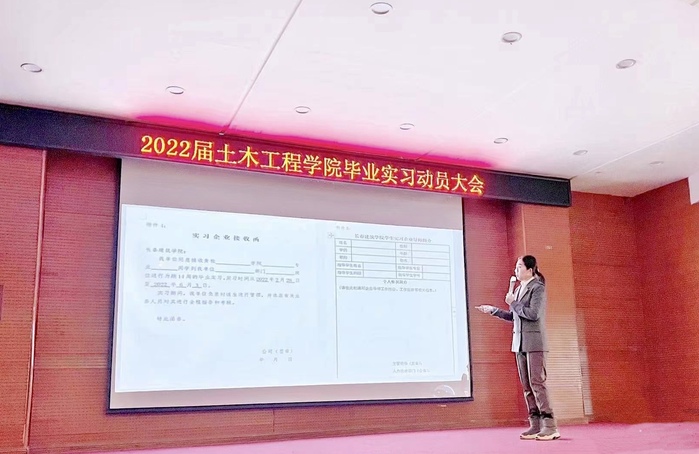 12月27日,学校土木工程学院在土木报告厅召开2022届毕业实习动员大会。学院大四年级辅导员、毕业实习指导教师及全体大四年级学生参加。大会由学校土木工程学院副院长陈岩主持。