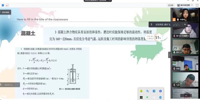 土木工程学院2018级同学们毕业实习地点分布在全国29个省、自治区和直辖市。学院23名毕业实习指导教师为线上“走访”会议积极准备策划,精选《战“疫”中的实习生,我们在一起》《云端一线牵,实习肩并肩》等主题,为同学们送去了学校和学院的问候与关怀。每位指导老师和同学们分享了“长春建筑学院致毕业实习学生的一封信”,详细了解了同学们当地的疫情防控措施和他们的生活、工作情况,叮嘱他们时刻做好个人防护,同时强调了在实习过程的施工安全、人身安全以及公共卫生安全问题,对在居家实习的学生强调了要认真完成实习岗位相关工作和企业导师交给的任务,对因疫情影响暂停实习的学生布置了学习图纸、规范、专业软件等作业。同学们也通过PPT对前三周的毕业实习情况进行了汇报,分享了在实习中的所做、所学和所感及如何适应新的工作环境、如何应对工作中各种问题等。