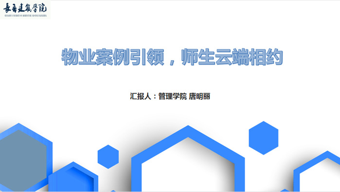3月30日,线上教学经验分享交流第一场活动由管理学院房地产开发与管理教研室唐明丽老师的题为“物业案例引领,师生云端相约”拉开帷幕。唐教师在课堂教学中,通过有针对性的选择典型案例,引导学生从专业的角度分析问题、解决问题,在云端课堂进行讨论分享,使课程更贴合现实,提高学生的参与度和主动性。课堂上共同观看抗疫纪录片《物业英雄》,增长防疫知识,坚定抗疫信心,增强家国情怀,使学生在学习专业知识的同时,道德品质也得到升华,将立德树人落到实处。