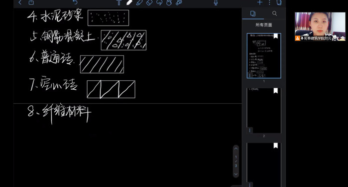 课中:引导学生带着问题进行听课学习,让学生成为学习的主角,老师利用Ipad手写板书与PPT相结合使课堂形式变得丰富;使用翻转课堂教学法,使学生反客为主,先进行思考,而后老师再进行总结,加深学生参与感;使用LAD(leaning and doing)教学法,边学边去实际绘画相应构造做法;使用LIFE教学法,将教学与生活联系,使学生印象深刻,通过观察宿舍周围墙体,快速理解相应墙体构造;使用PK课堂教学法,通过赢得课堂表现分使学生形成竞争,再形成学习动力。