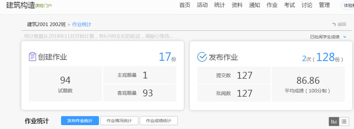 授课过程中,在讲解到关键节点时提出问题,让学生通过弹幕回答,并发布随堂测试、讨论题、画构造图等,再通过学习通对学生成绩进行统计,检验学生对知识的把握和理解。