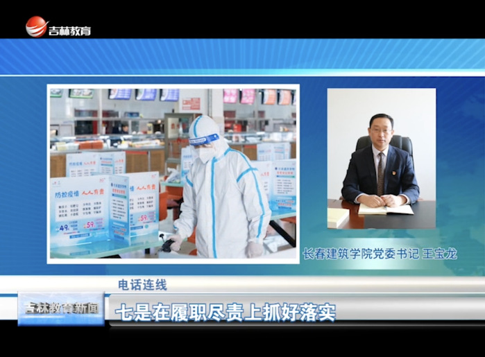 为加快长春社会面清零目标,学校围绕“教育系统必须坚持‘动态清零’不动摇”这一主题,抓好“十落实”,助力打赢动态清零攻坚行动。4月9日晚,吉林教育电视台报道了学校“十落实”举措。