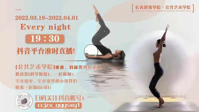 3月19日,刘赫男接到带领学院学生“科学防疫、一起瑜伽”的工作任务,她通过抖音直播的方式,每日晚7:30与同学们一起进行瑜伽锻炼,直播中宣传寝室锻炼的小知识、分享运动方式,帮助同学们增强体魄,树立乐观心态,活动在学生中起到了较好的效果。