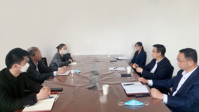 5月19日上午,学校校长张兴海、党委书记王宝龙、校办副主任高跃函来到人工智能产业学院,就学院教育教学改革进行座谈交流。人工智能产业学院院长杨永健、副院长吴侨、党总支副书记林斌参会。