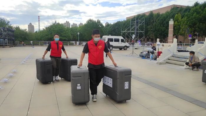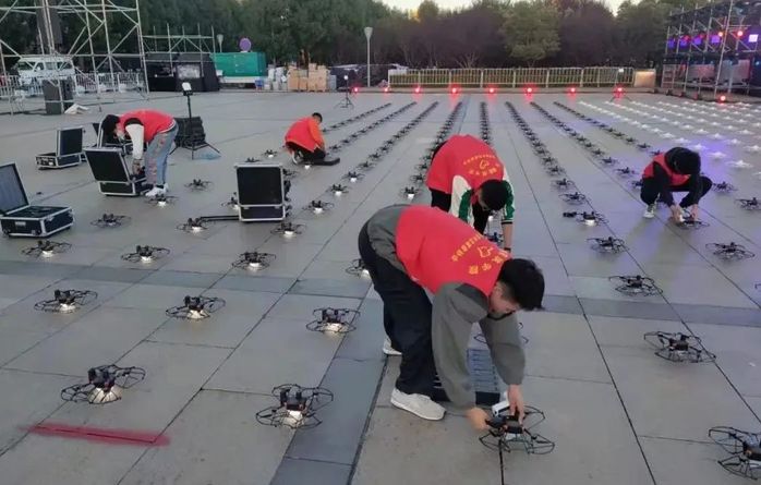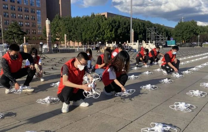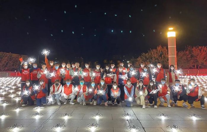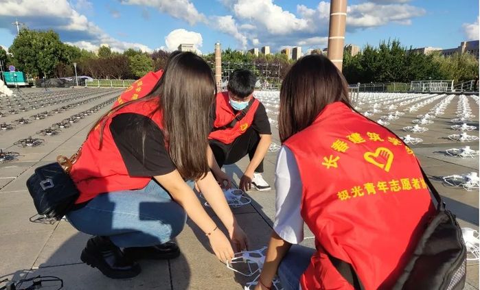 当人们尽情享受无人机表演带来的视觉盛宴时,一支由50人组成的“红马甲”队伍却在为一架架无人机有序腾空而起做着细致的准备工作,他们就是来自长春建筑学院极光青年志愿者协会的50名优秀同学。