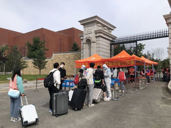 为保证每位学生的健康安全,学校奢岭、高新两个校区在接待学生返校时,依次通过扫描吉祥码、检查行程码、核验48小时阴性核酸证明、行李消杀、测温等流程陆续进入校园。进入校园后,各学院按照疫情防控整体要求,进行返校后核酸检测工作。老师和学生志愿者们从日出到日暮,热情服务,耐心引导,让学生感受到了“回家”的温暖。