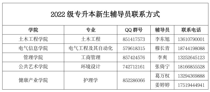 六、2022级专升本专业辅导员联系方式