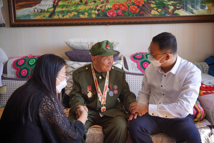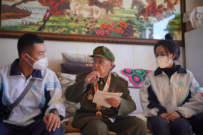 本次活动于早上八点开始,经过一个半小时的车程后,师生们来到长春市九台区土们岭街道抗美援朝退伍老战士金健家中进行走访慰问,倾听老人讲述抗战英雄故事。
